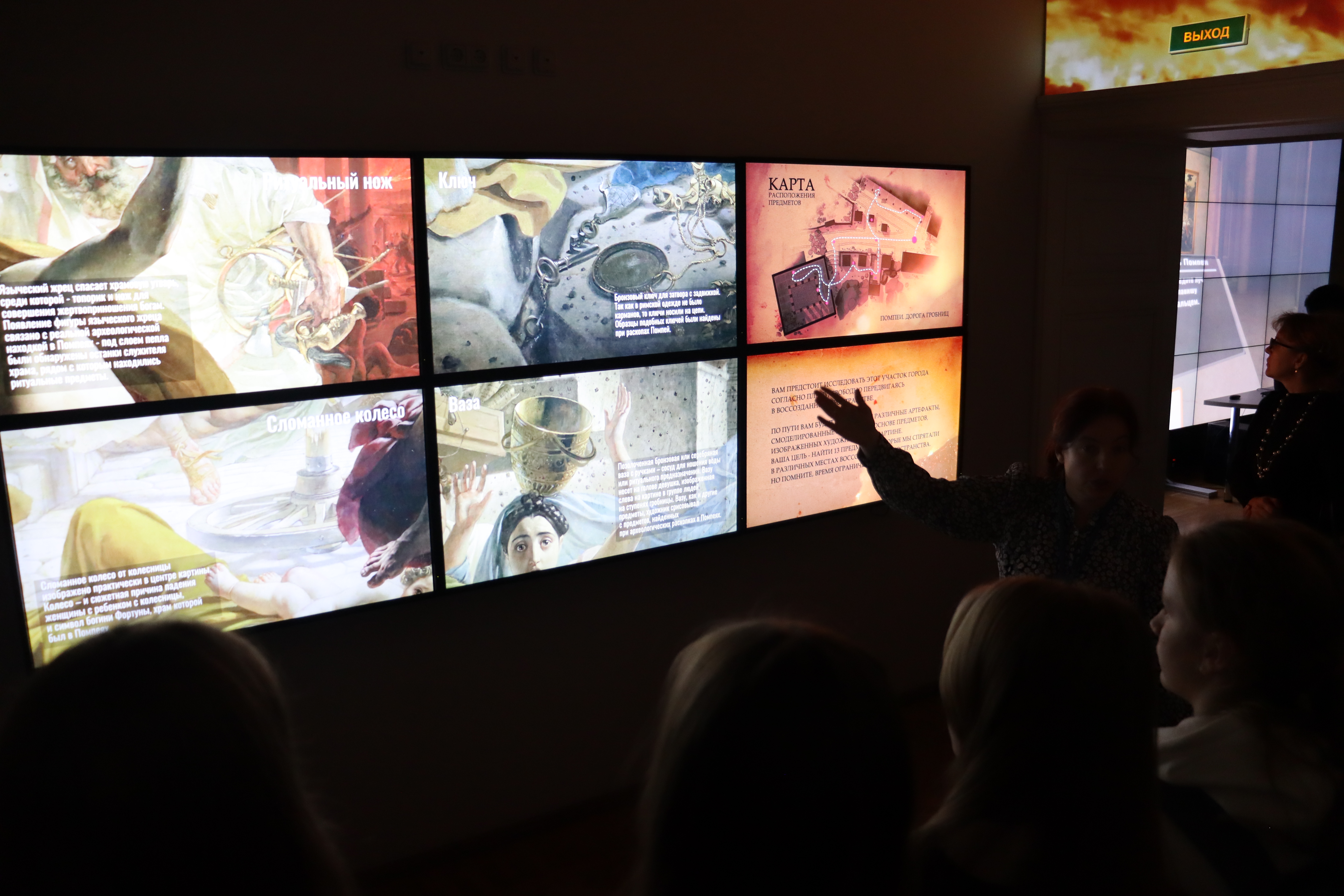 Карта воссозданного древнеримского города и дополнительная информация, которая раскрывает историю утерянных предметов, подготовлены искусствоведами Центра мультимедиа и размещены на экранах в эспозиционном пространстве.