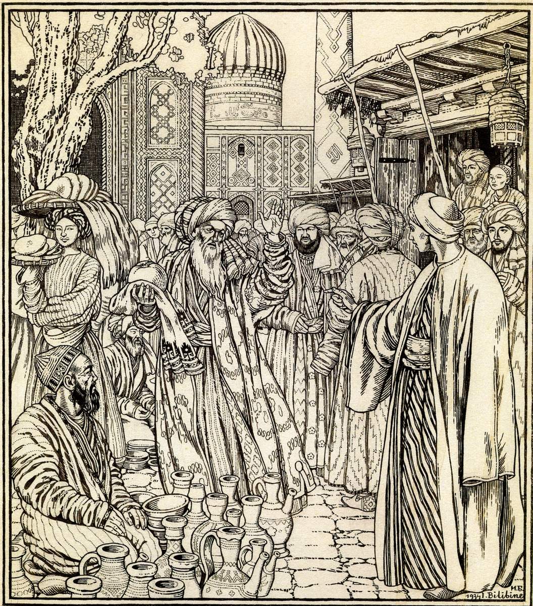 Иллюстрация к восточным сказкам "Тысяча и одна ночь". 193451. Билибин И. Я.