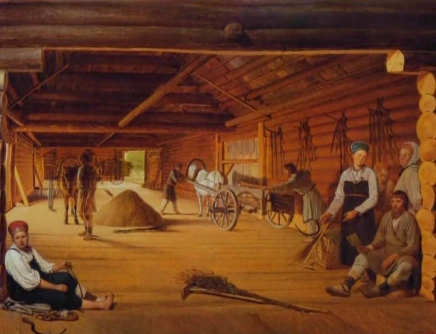 Алексей Венецианов параллельно со службой в одном из департаментов занимался живописью. Посещал классы Академии художеств как вольноприходящий, получив в 1811 году звание академика живописи. Он пишет картины, непосредственно наблюдая природу и быт крестьян. Одна из первых его картин - "Гумно".