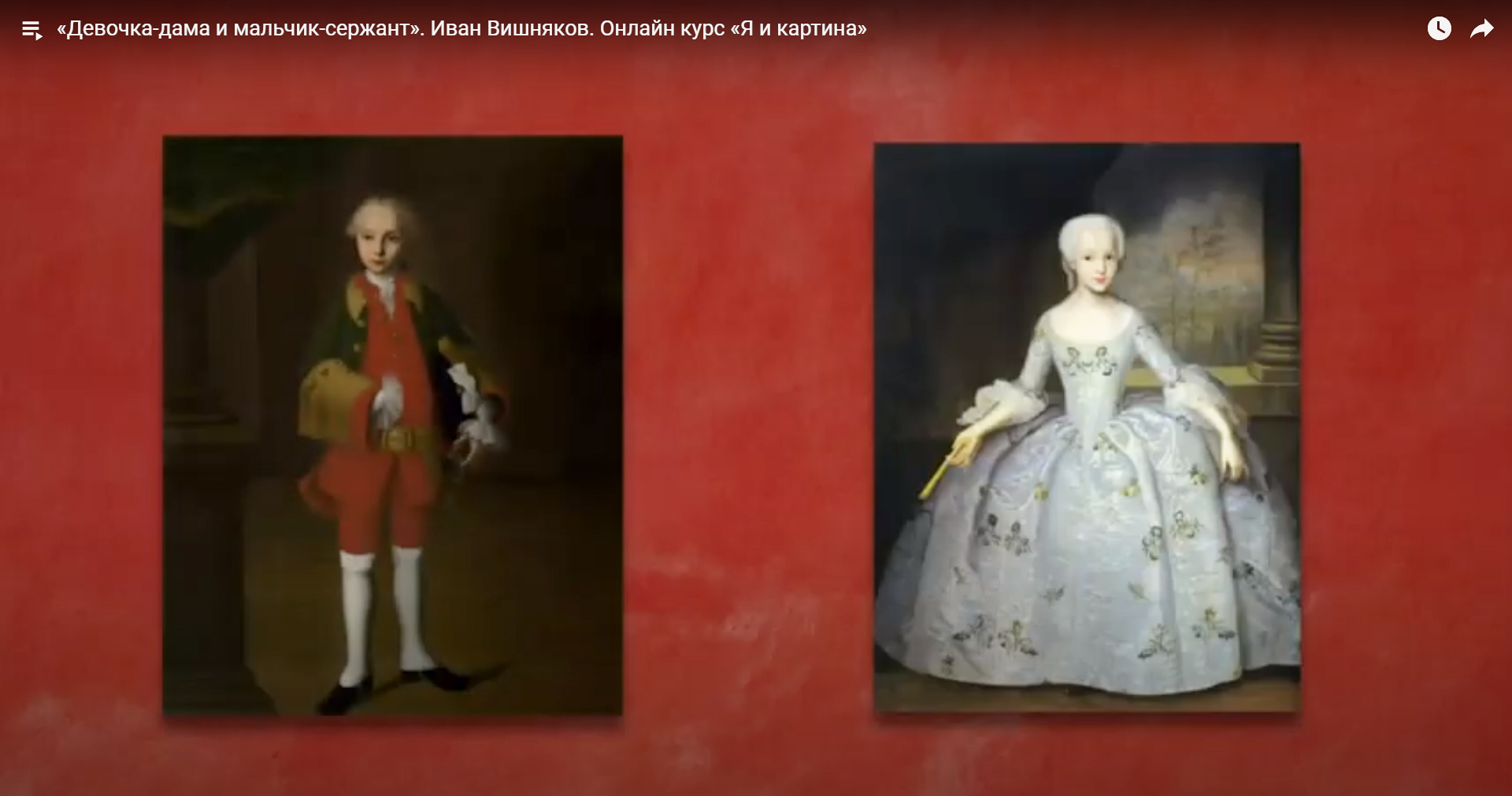 В этом путешествии мы познакомимся с братом и сестрой Фермор, изображенными на картинах Ивана Вишнякова, и узнаем о военной форме, париках и китовом усе.