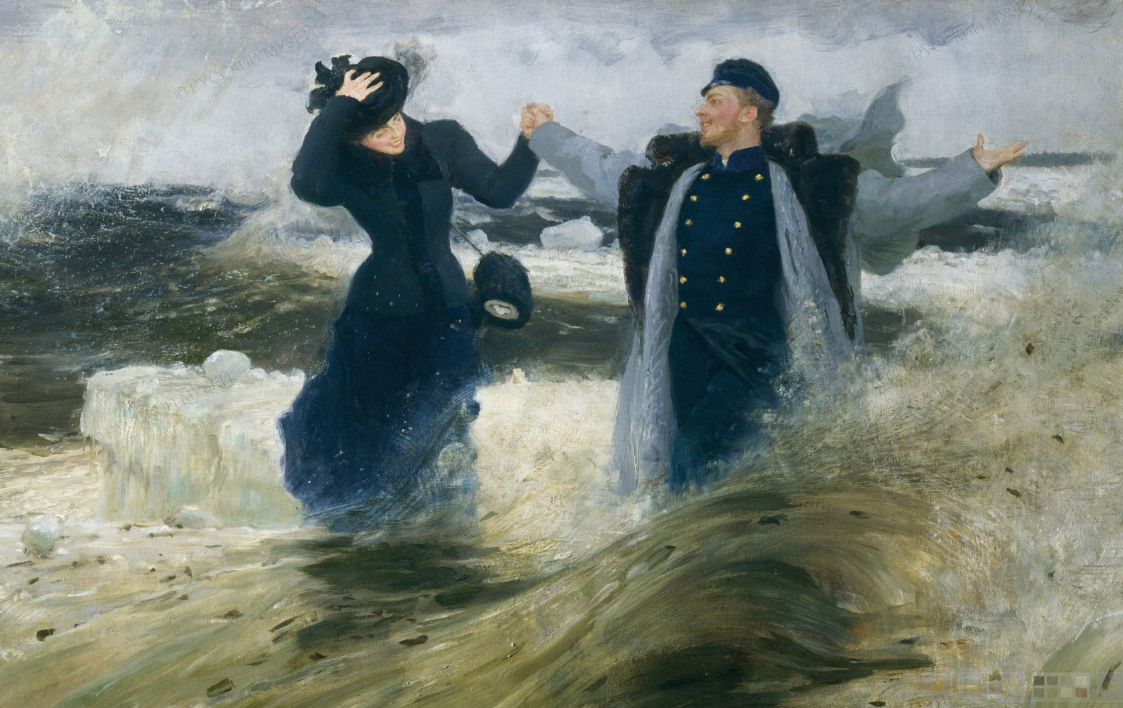 Репин уверял, что поводом для создания произведения явилось лишь непосредственное жизненное впечатление, полученное в Куоккала на берегу Финского залива. Уже немолодой живописец горд тем, что ему удалось передать восторг молодых людей, наблюдающих за игрой волн, ломающих первые льдины.