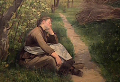 “Жил такой художник – Исаак Левитан. И был он очень грустный, потому что жил он очень тяжело. Его родители были бедными людьми. И даже в том доме, где он вырос, у него не было собственного уголка. И когда он поступил в художественное училище, он часто оставался там ночевать, забивался под лавку, чтобы его не смог найти злой сторож...”