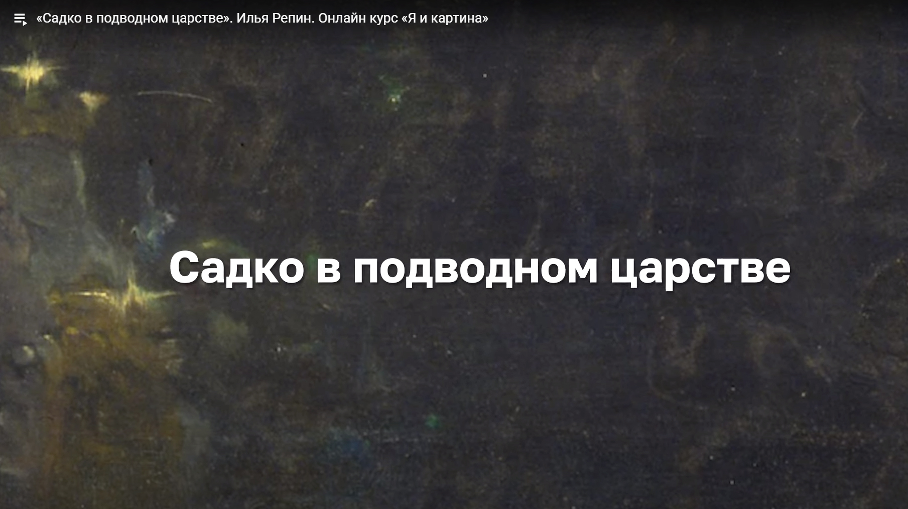 Данное путешествие знакомит нас с картиной Ильи Репина “Садко в подводном царстве”. Вместе с художником мы окунемся в чудесный подводный мир. Увидим череду невест. И узнаем, кого выберет Садко.