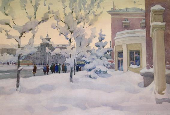 Югаткин А.А. Октябрьская площадь. 1980. Бумага, акварель. 53 х 75. Государственный художественный музей Алтайского края