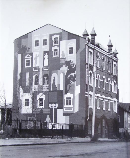 В 1980 году Барнаул отмечал свой 250-летний юбилей. Была предусмотрена программа его монументального оформления. Одним из лучших примеров монументальной росписи может служить роспись фасада дома № 76 по улице Гоголя (знаменитый Барнаульский «небоскреб»). «Старый город» так назвал свою композицию художник В.Ф. Тимуш. Очень тактично обошелся он с памятником архитектуры, оживив его фасад сценой из жизни Барнаула начала ХХ века - с дамами, кавалерами, старинным автомобилем и фонарным столбом, с балконами и балюстрадами, с нежно скользящими по кирпичной стене тенями деревьев.