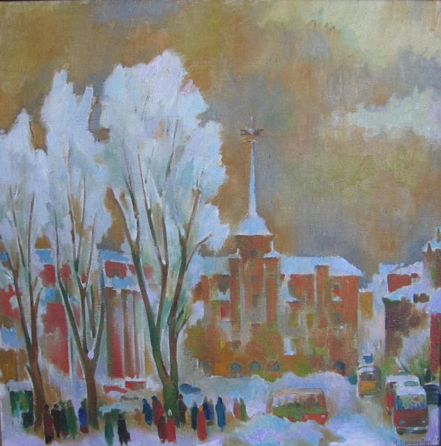 Цесюлевич Л.Р. Октябрьская площадь. 1978. Холст, масло. 79 х 79. Государственный художественный музей Алтайского края