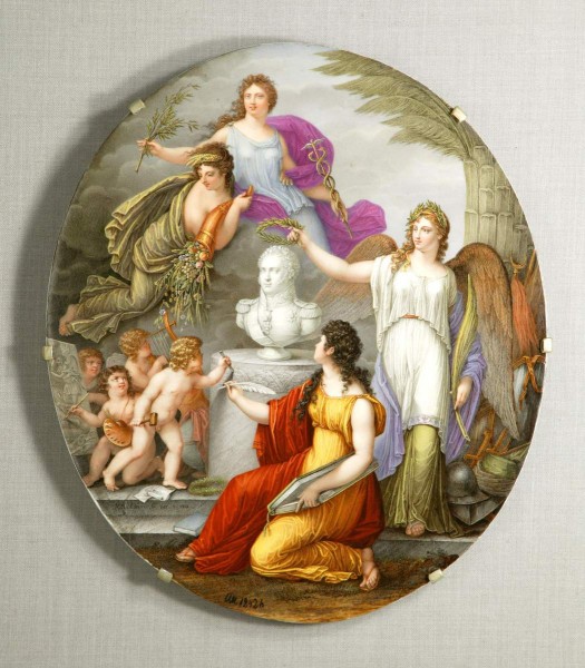 - Фарфор, роспись надглазурная, золочение, цировка;. 41,5 х 36,9