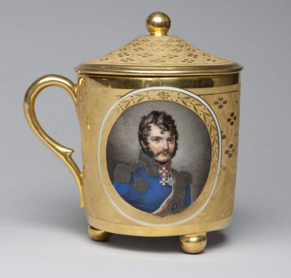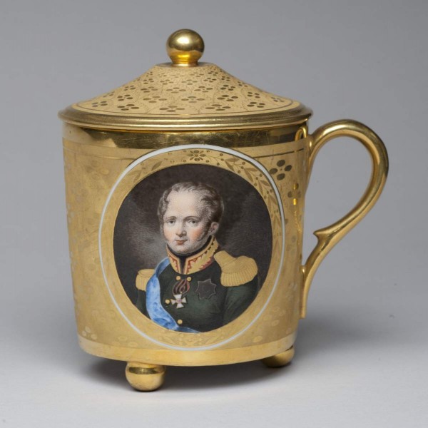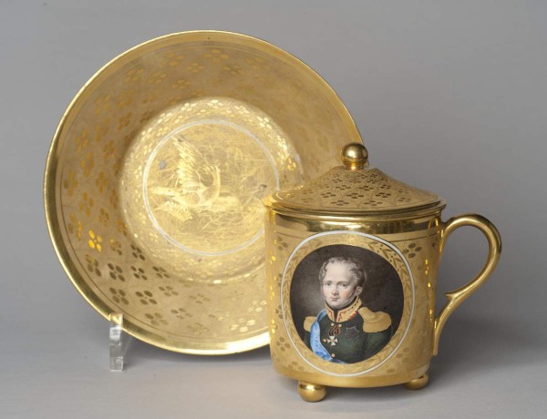 Бокал с крышкой и блюдцем с портретами графа В. В. Орлова-Денисова и императора Александра I