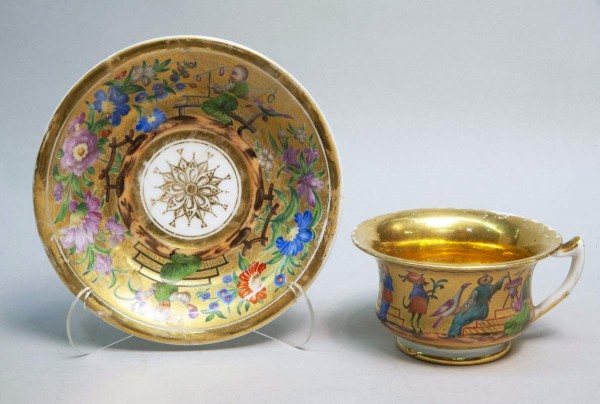 Чашка с блюдцем из сервиза с изображением китайцев