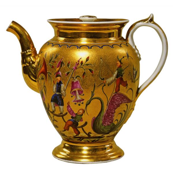 Чайник яйцевидный с крышкой. Из сервиза с изображением китайцев