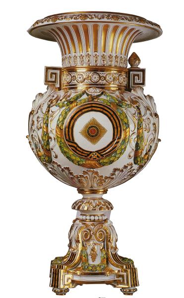 Императорский военный орден Святого Великомученика Георгия Победоносца — высшая военная награда Российской империи, учрежденная Екатериной II 26 ноября 1769 года для отличия офицеров за подвиги на поле боя и выслугу в воинских чинах. Орден имел четыре степени отличия. Ежегодно 26 ноября в Георгиевском зале Зимнего дворца проводилось заседание Думы этого ордена, и устраивался торжественный обед, для которого и предназначался этот сервиз. Екатерина Великая в стране и мире. СПб, 2017. С. 117.