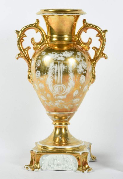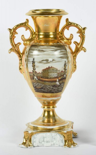- Porcelain, painting over glaze, gilding. 26,2 х 15,8 х 10,6