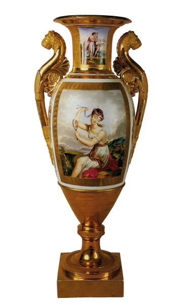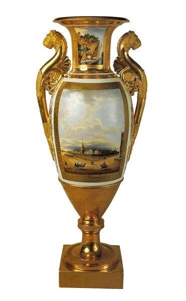 По своим размерам и мастерству исполнения эта ваза является уникальной для продукции частных фарфоровых заводов России. Она украшена миниатюрой по литографии неизвестного художника «Вид на Адмиралтейство и бульвар со стороны Дворцовой площади» (1820-е годы). Дополняют живописный декор мифологические композиции «Венера с зеркалом» и «Муза Эрато и амур с горящим факелом», а также пейзажи.