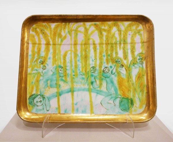 - Майолика, роспись подглазурная, painting over glaze, gilding. Дл.-31,5; Ш.-25,0; В.-2,2