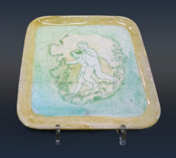 - Майолика, крытье белой эмалью, роспись подглазурная. 24,0 х 24,1