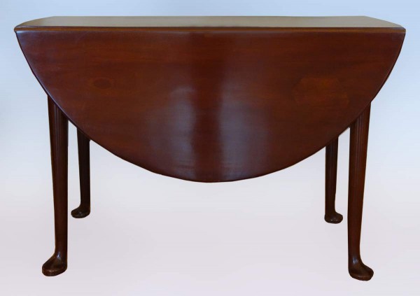 Oval table with hanging flaps and expanding legs