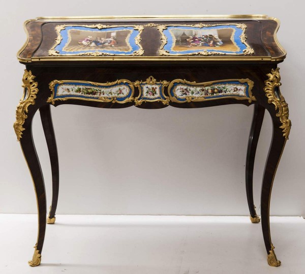 Мебель для Кабинета великой княгини Марии Александровны, в будущем жены императора Александра II, фанерованная розовым деревом, с фарфоровыми вставками в бронзовой оправе, выполнена в формах стиля рококо ХVIII века. Лариса Обухова // Для славы всероссийской! Предприниматели и меценаты в России XVIII – начала XX веков. СПб, 2024. С. 109.