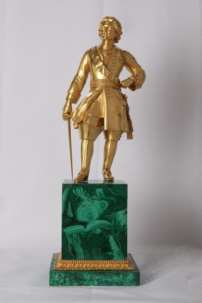 Уменьшенное повторение памятника Петру I, отлитого под руководством Петра Клодта в мастерской Академии художеств и торжественно открытого 27 июня 1841 года в Кронштадте. И мореплаватель, и плотник. Петр Великий в русской художественной культуре. СПб, 2022. С. 155.