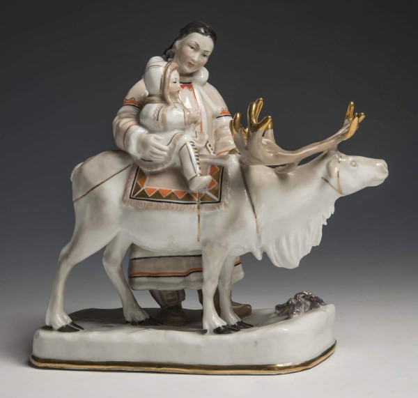 Как правило, вплоть до середины 1950-х годов советские художники подчеркивали и утверждали героико-романтическую сторону полярных экспедиций. Здесь наряду с руководителями и участниками этих путешествий героями все чаще становятся представители коренных народов Крайнего Севера <…> Эта линия впоследствии, в 1930–1960-е годы, найдет продолжение в советской фарфоровой пластике Девочка-якутка с цветком» СФ-458, «Ребенок-чукча с мячом» СФ-396, «Крайний Север» СФ-336) и будет дополнена прекрасными образцами анималистики. Руслан Бахтияров. К берегам Антарктиды и Арктики // К берегам Антарктиды и Арктики». СПб, 2019. С. 8.