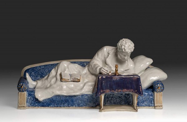 В советское время традиция создания произведений к различным юбилеям Пушкина была продолжена. Особенно богатым на фарфоровую пушкиниану стало столетие со дня кончины. В 1936–1937 годах Государственный фарфоровый завод имени М. В. Ломоносова не только повторил в фарфоре уже ранее созданные бюсты поэта работы И. П. Витали, А. И. Теребенева и П. П. Трубецкого, но и выпустил ряд новых произведений – чернильный прибор «А. С. Пушкин за работой» Н. Я. Данько, в дальнейшем тиражировавшийся в разных вариантах росписи, и фигуры «Пушкин на прогулке» (Н. Я. Данько) и «Пушкин перед дуэлью» (А. А. Суворова). Также к 100-летию со дня гибели поэта на Конаковском фаянсовом заводе была создана эффектная монументальная композиция И. Г. Фрих-Хара «Пушкин на диване». Л. Г. Матвеев. Пушкин и его время в декоративно прикладном искусстве // «Он победил и время и пространство...». К 225-летию со дня рождения А. С. Пушкина. СПб, 2024. С. 163.
