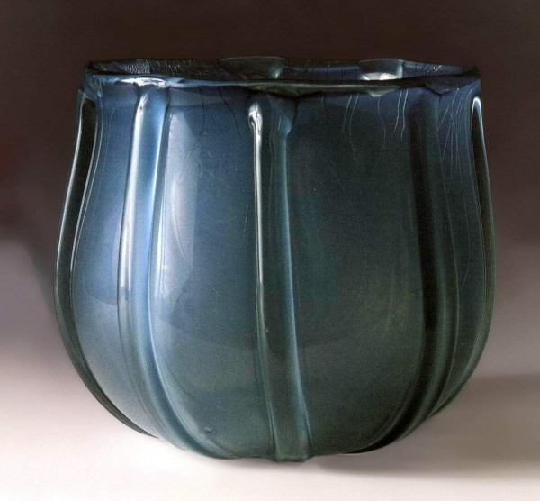 Среди работ скульптора есть и одноцветные вещи из окрашенного или бесцветного стекла. К ним относятся разнообразные по цвету рифленые вазы глубоких (желтых, зеленых) или светлых (нежно-голубых, розовато-перламутровых, опаловых) тонов. Вертикальные рельефные полосы подчеркивают упругость форм этих сосудов. Ирина Попова. Произведения В. И. Мухиной в декоративно-прикладном искусстве // Вера Мухина. СПб, 2009. С. 35.