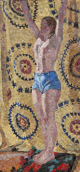 Александр Дейнека проявил себя в самых разнообразных видах художественной деятельности – живописи, графике, скульптуре, витраже, мозаике. В собрании отдела декоративно-прикладного искусства Русского музея хранятся три уникальные по своим размерам, по художественному и техническому уровню исполнения мозаичных панно: «Утро» (1949, 149х73 см) «Мирные стройки» (1959-1960, 375х340 см), «Хоккеисты» (1959-1960, 217х215 см), выполненные по эскизам А. А. Дейнеки.