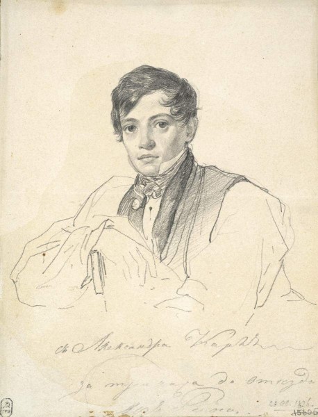 Внизу авторская надпись: съ Александра Карлъ/ за три часа до отьезда/ изъ Рима/ другою рукой: 28 ав. 1826; на обороте надпись: AB di 28/Agusto 1826