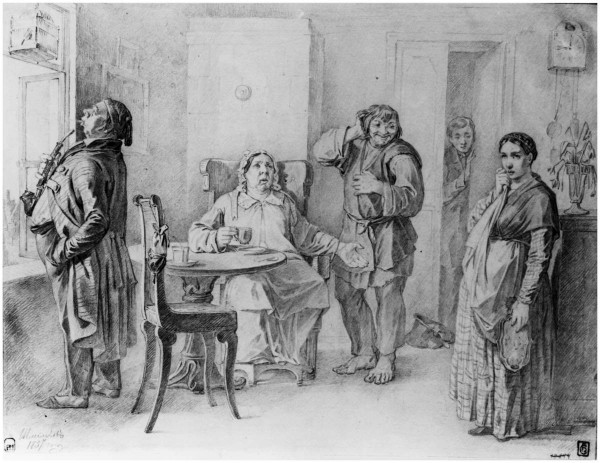 Среди разнообразных рисунков шестидесятников ярко выделялись выразительные работы великолепного мастера продуманно-сжатого рассказа П. М. Шмелькова, начинавшего некогда рядом с Федотовым, а с 1861 года активно сотрудничавшего в журналах «Развлечение» и «Зритель». <...> Целый ряд его наблюденных в жизни сюжетов, как бытового, так и остросоциального характера, был близок творчеству художников-жанристов. В предшествующее десятилетие сатирический рисунок, иллюстрация и карикатура во многом предопределили последующее развитие искусства, содействуя формированию критической мысли, направляя искусство по пути обличительства, помогая поиску новых средств художественной выразительности. Шувалова И. Н. Русское искусство 1860-х годов – вокруг Перова // Святые шестидесятые». Живопись, графика, скульптура. СПб. 2002. С. 17.