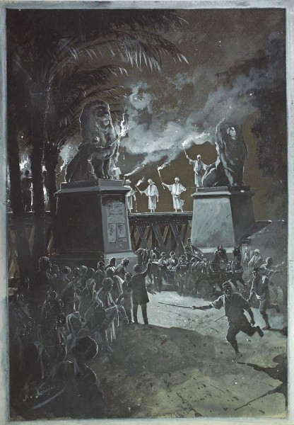 В 1890–1891 годах состоялась продолжительная, более 300 дней, поездка цесаревича Николая Александровича, будущего императора Николая II на Восток. Направление и выбор маршрута этого grand tour диктовались прежде всего политическими реалиями времени. Одной из первых стран, которые посетил наследник, стал Египет. 10–27 ноября 1890 года он со своими спутниками совершил поездку по Нилу до Асуана и обратно, знакомясь с древними памятниками. Одно из самых сильных впечатлений на путешественников произвела столица страны, где сочетались древность тысячелетий и сегодняшний день. «Каир арабских сказок, — писал о нем Э. Э. Ухтомский, — и последнего слова европейской цивилизации, пересаженный на африканскую почву, — Каир, на который любуется почти недосягаемая высота ближайших пирамид». Вскоре, после окончания путешествия, было опубликовано богато иллюстрированное издание в трех томах князя Э. Э. Ухтомского «Путешествие на Восток Его Императорского Высочества Государя Наследника Цесаревича, 1890–1891» (Санкт-Петербург; Лейпциг, 1893–1897). Несмотря на то, что среди сопровождавших наследника лиц был художник Николай Николаевич Гриценко, который исполнил в поездке около 300 зарисовок, иллюстрации к книге были заказаны Николаю Николаевичу Каразину. К этому времени он зарекомендовал себя как профессиональный иллюстратор, много и успешно работавший в этом жанре для русской периодики и книг. Монохромные иллюстрации Каразина фиксировали наиболее важные достопримечательности, часто представляя собой соединение на одном листе изображения нескольких памятников. Ряд иллюстраций были посвящены египетским пейзажам, в частности видам Нила. Наталия Соломатина // Африка в русском искусстве. СПб, 2023. С. 44.