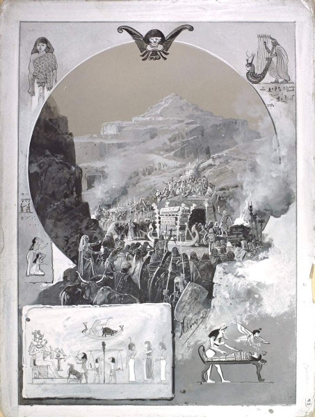 В 1890–1891 годах состоялась продолжительная, более 300 дней, поездка цесаревича Николая Александровича, будущего императора Николая II на Восток. Направление и выбор маршрута этого grand tour диктовались прежде всего политическими реалиями времени. Одной из первых стран, которые посетил наследник, стал Египет. 10–27 ноября 1890 года он со своими спутниками совершил поездку по Нилу до Асуана и обратно, знакомясь с древними памятниками. Одно из самых сильных впечатлений на путешественников произвела столица страны, где сочетались древность тысячелетий и сегодняшний день. «Каир арабских сказок, — писал о нем Э. Э. Ухтомский, — и последнего слова европейской цивилизации, пересаженный на африканскую почву, — Каир, на который любуется почти недосягаемая высота ближайших пирамид». Вскоре, после окончания путешествия, было опубликовано богато иллюстрированное издание в трех томах князя Э. Э. Ухтомского «Путешествие на Восток Его Императорского Высочества Государя Наследника Цесаревича, 1890–1891» (Санкт-Петербург; Лейпциг, 1893–1897). Несмотря на то, что среди сопровождавших наследника лиц был художник Николай Николаевич Гриценко, который исполнил в поездке около 300 зарисовок, иллюстрации к книге были заказаны Николаю Николаевичу Каразину. К этому времени он зарекомендовал себя как профессиональный иллюстратор, много и успешно работавший в этом жанре для русской периодики и книг. Монохромные иллюстрации Каразина фиксировали наиболее важные достопримечательности, часто представляя собой соединение на одном листе изображения нескольких памятников. Ряд иллюстраций были посвящены египетским пейзажам, в частности видам Нила. Наталия Соломатина // Африка в русском искусстве. СПб, 2023. С. 44.
