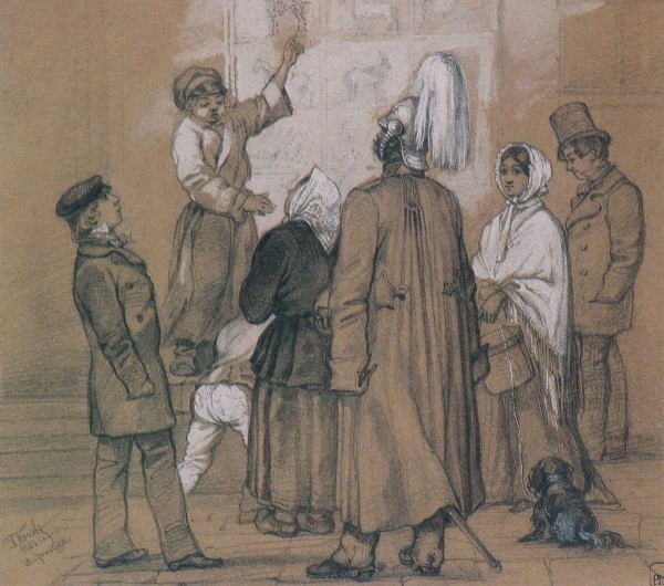 - Бумага серая, графитный карандаш, белила. 18,6 х 20,1