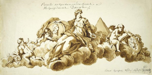 Home page Online resourcesCollectionsDrawing and Waterсolours Россия покровительствует и награждает заслуги Prokofiev I.P. 1758, St. Petersburg - 1828, St. Petersburg Россия покровительствует и награждает заслуги Не ранее 1800 Paper, sepia, ink, brush, nib. 23,7 x 49,3 Р-1902 Пост. в 1917, дар А. Л. Обера; ранее — собрание С. П. Яремича Period Early 19th century CategoryAllegory Share «Виртуальный Русский музей» в социальных сетях: