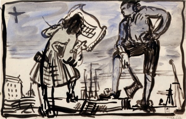 Этюды-наброски и эскизы к картине «Петр в Голландии» («Петр на верфях в Амстердаме»). Лист из альбома. На обороте: Эскиз-вариант той же картины. Тушь, кисть. 1910