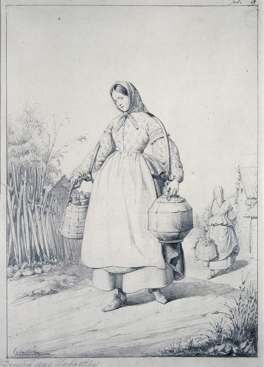 Серия рисунков, изображающая петербургские типы, была исполнена художником в середине 1840-х годов. На нескольких листах имеется подпись — Labastide, благодаря которой до нас дошло имя рисовальщика, а на одном дата -1845 год. Они предназначались для гравирования, о чем свидетельствует специально оставленное на полях листов место для указания имени гравера. Но по неизвестным причинам издание не состоялось. Подобные изображения „костюмно-типажного рода" были широко распространены на протяжении XVIII — первой половины XIX века как в России, так и в Европе. Наталия Соломатина // Санкт-Петербург: Портрет города и горожан. СПб, 2003. С. 282-283.