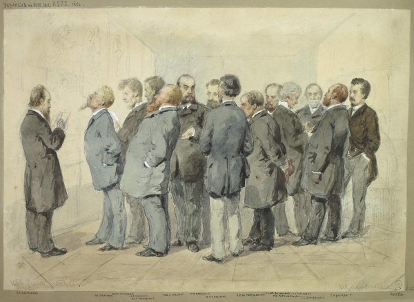 Художником создан групповой портрет с удачно построенной композицией и живо переданными характерными черты каждого персонажа. Из далекого 1886 года донесена атмосфера споров, свойственная профессиональной среде художников и, судя по всему, мало подверженная течению времен. Ирина Верховская // Санкт-Петербург: Портрет города и горожан. СПб, 2003. С. 386.