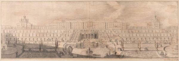 Загородная серия <Махаева> состояла из пяти листов. Три больших вида представляли три загородных дворца, а еще два пейзажа поменьше – павильоны в Царскосельском парке (Гр.-31861, Гр.-31858). Если дворцы в Царском Селе (Гр.-31868, Гр.-31969) и Петергофе (Гр.-3129) изображены Махаевым фронтально, так, как это было принято еще в петровское время, то ракурс дворца в Ораниенбауме (Гр.-31782) гораздо более современен. Юлия Ходько. Похвала столичному городу Санкт-Петербургу // Петербург Михаила Махаева. СПб, 2022. С. 13.