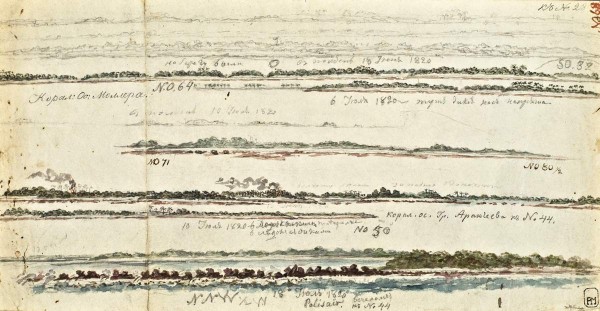 Рисунок выполнен П. Н. Михайловым во время кругосветного плавания 1819–1821 гг. под командованием капитана 2-го ранга Ф. Ф. Беллинсгаузена на шлюпе «Восток».