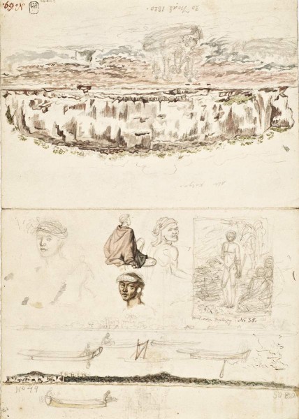 Наброски. На обороте: Жители острова Пализера. Берега острова Опаро. 20 июня, 12–13 июля 1820