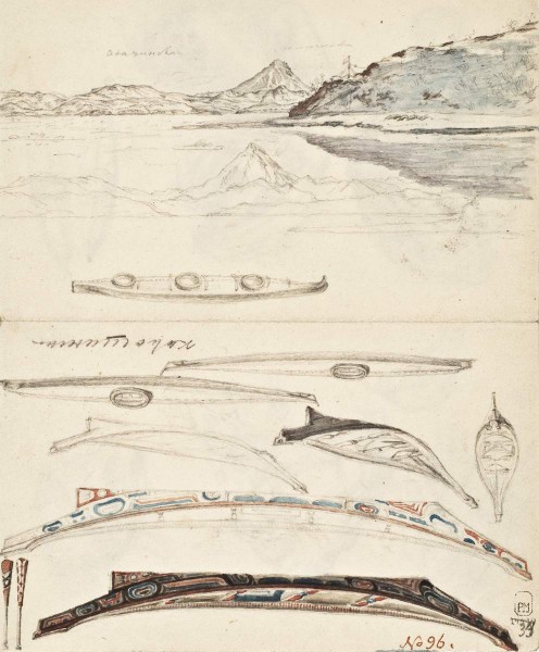 На обороте: Индейцы-колоши. Две байдары. Наброски. 1827–1828