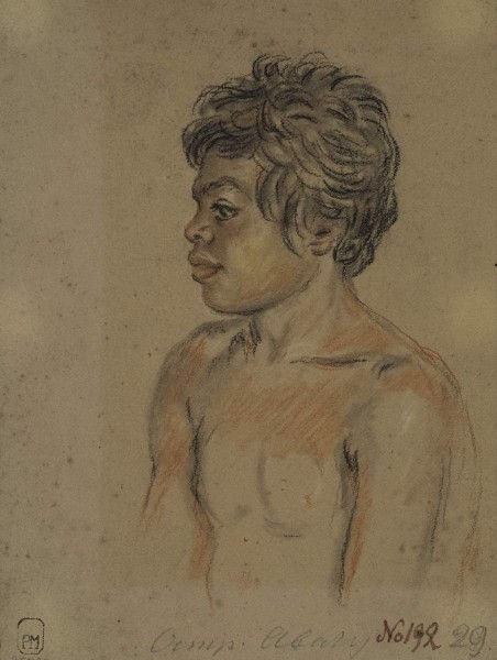 - Бумага коричневая, уголь, сангина, мел. 14,8 x 11,4