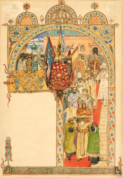 Эскиз иллюстрации для издания «Описание Священного Коронования Их Императорских Величеств Государя Императора Александра Третьяго и Государыни Императрицы Марии Феодоровны всея России». [СПб, 1883]. С. 29 (Использована для меню коронационного обеда).