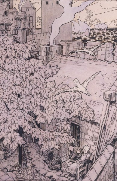 Иллюстрация к книге Е. В. Балобановой «Легенды о старинных замках Бретани». Царица бурь