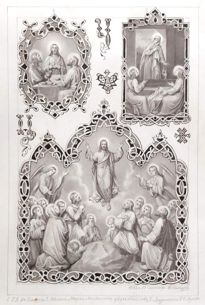 1. Иисус Христос в Емаусе. 2. Явление Марии Магдалине двух ангелов. 3. Вознесение Христа