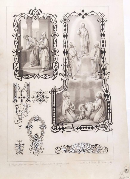 Преображение. Мытарь и фарисей. Заглавные буквы, виньетки