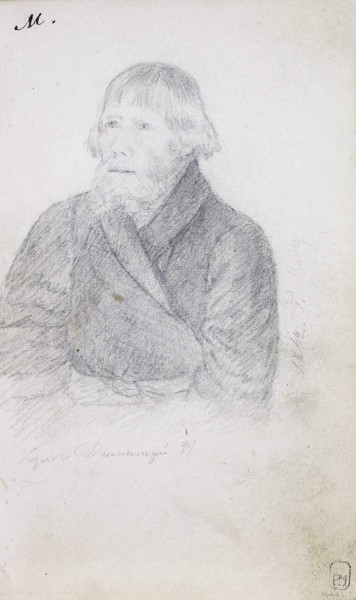 Вдоль правого края авторская дата и подпись: 1842. Г. Васи; под изображением надпись: Кум ъ Димитрiй и нерасшифрованная монограмма; слева вверху тушью литера; М.; справа вверху пером: 6