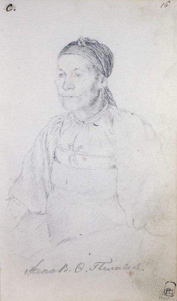 Под изображением надпись (рукою Н. П. Милюкова?): Жена В. О. Пелагея: слева вверху тушью литера: С; справа вверху пером: 18