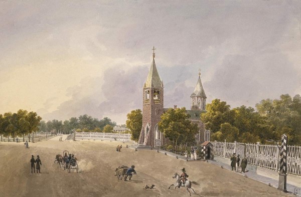 Окрестности столицы и парки были одной из главных тем в творчестве Кольмана, а изображения Островов занимали в нем особое место. Художник часто повторял эти акварели, варьировал понравившиеся заказчикам мотивы. На Островах любил отдыхать великосветский Петербург, который переезжал сюда вслед за императорской фамилией и жил, по словам одного из современников, «в карточных домиках, именуемых дачами». Летний облик Островов, заполненных элегантной публикой, разнообразие их архитектурной застройки Кольман и запечатлел в своих произведениях. Одна из доминант Каменного острова, церковь Иоанна Предтечи, строительство которой в 1776–1778 велось по проекту Ю. М. Фельтена, в разных ракурсах неоднократно изображалась художником, и эти виды также имели большой успех. Наталия Соломатина //Санкт-Петербург: Портрет города и горожан. СПб, 2003. С. 87.