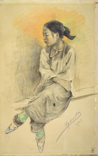Надписи, подписи: справа внизу: «НКравченко / 1902» (первые две буквы в виде монограммы).