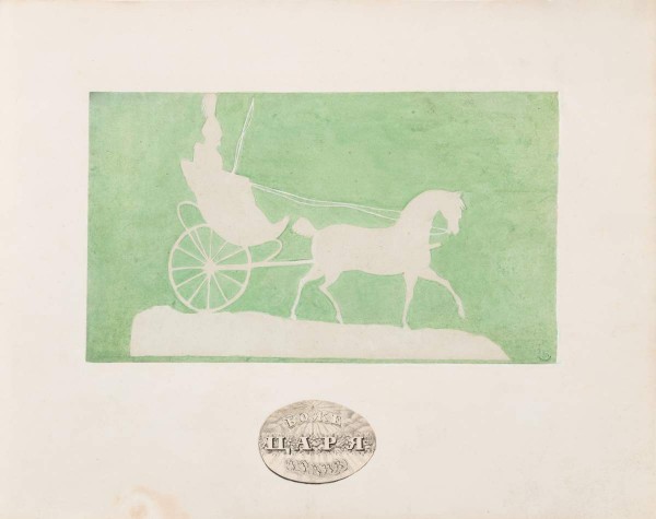 - Бумага белая и зеленоватая (аппликация). 11,3 х 16,2 (силуэт); 11,5 х 20 (фон); 22,3 х 28,2 (паспарту)