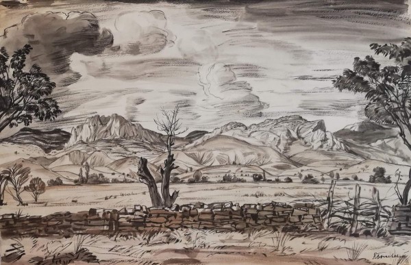 Служба в армии (1914–1918) была важным рубежом в жизни мастера. Демобилизовавшись, он активно включился в общественную работу: в 1918–1920 годах был сотрудником Крымского комитета по делам музеев и охране памятников искусства и старины (Крымохрис), участвовал в организации и преподавал в Феодосийских ГСХМ, позже вел занятия в Народной студии при Феодосийской галерее. По заданию Крымохриса им начата и создавалась в течение 1920-х годов серия изображений памятников старины Крыма. Полные света и воздуха акварели и рисунки имеют большой историко-художественный интерес. Таков лаконичный, исполненный тушью лист «Крым. Деревня „Козы“» (начало 1920-х годов). Владимир Круглов. Константину Богаевскому 150 лет // Константин Богаевский. СПб. 2023. С. 10.